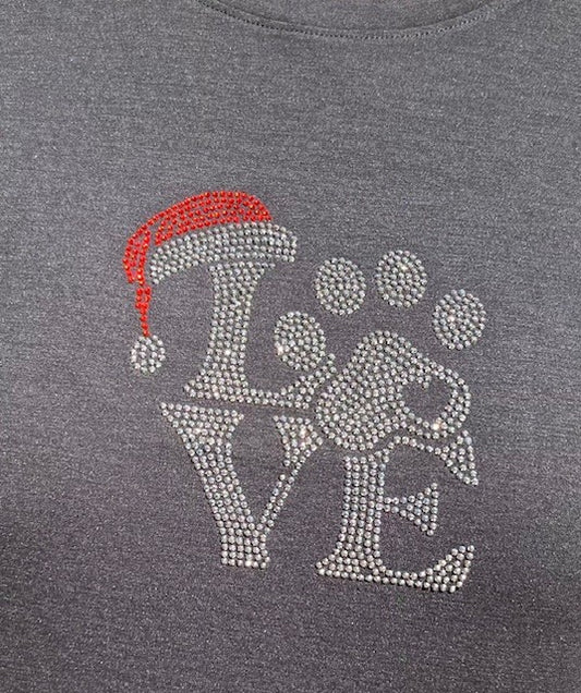 LOVE With Paw Print & Santa Hat in Rhinestones
