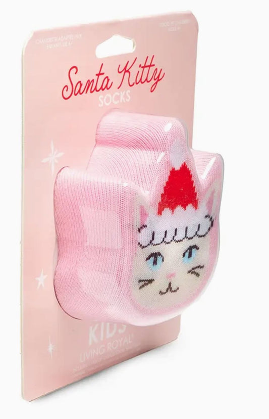 Santa Kitty Kids Socks - 3D Packaged Crew Socks - Holiday