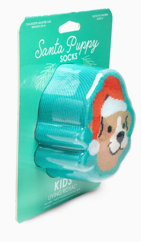 Santa Puppy Kids Socks - 3D Packaged Crew Socks - Holiday