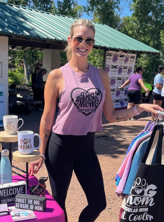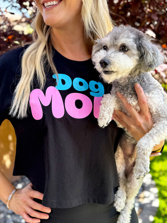 Rockin The Dog Mom Life Cropped T-Shirt with Rhinestones