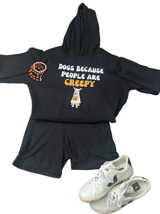 Dogs Because People Are Creepy Cropped Halloween Hoodie
