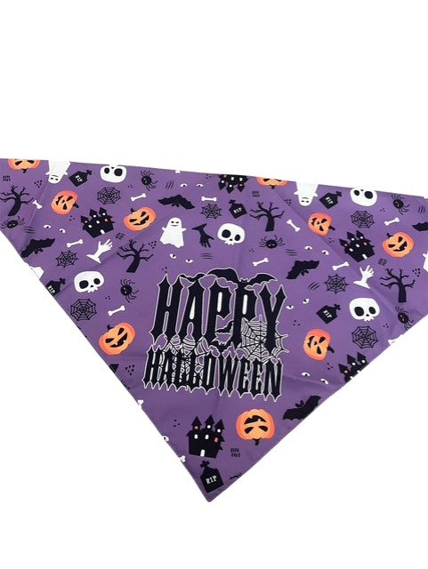 Keep your dog looking festive and ready for trick or treating with our purple, ghosts & pumpkins Halloween bandana. Great for medium to large dogs.